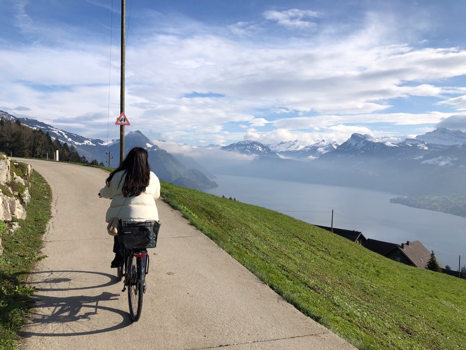 ♡ 신난 뒷모습, 기차역에서 가까웠던- 뷰가 끝내주었던- 그린델발트 숙소가는 길smiley